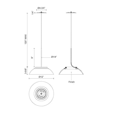 Specification- Fixture Dimensions: D12" x H3-5/8"