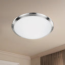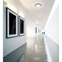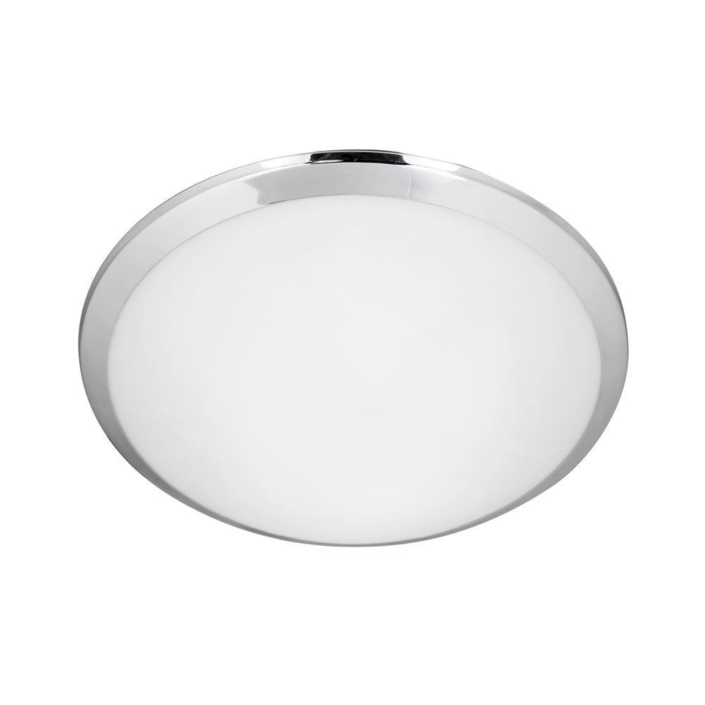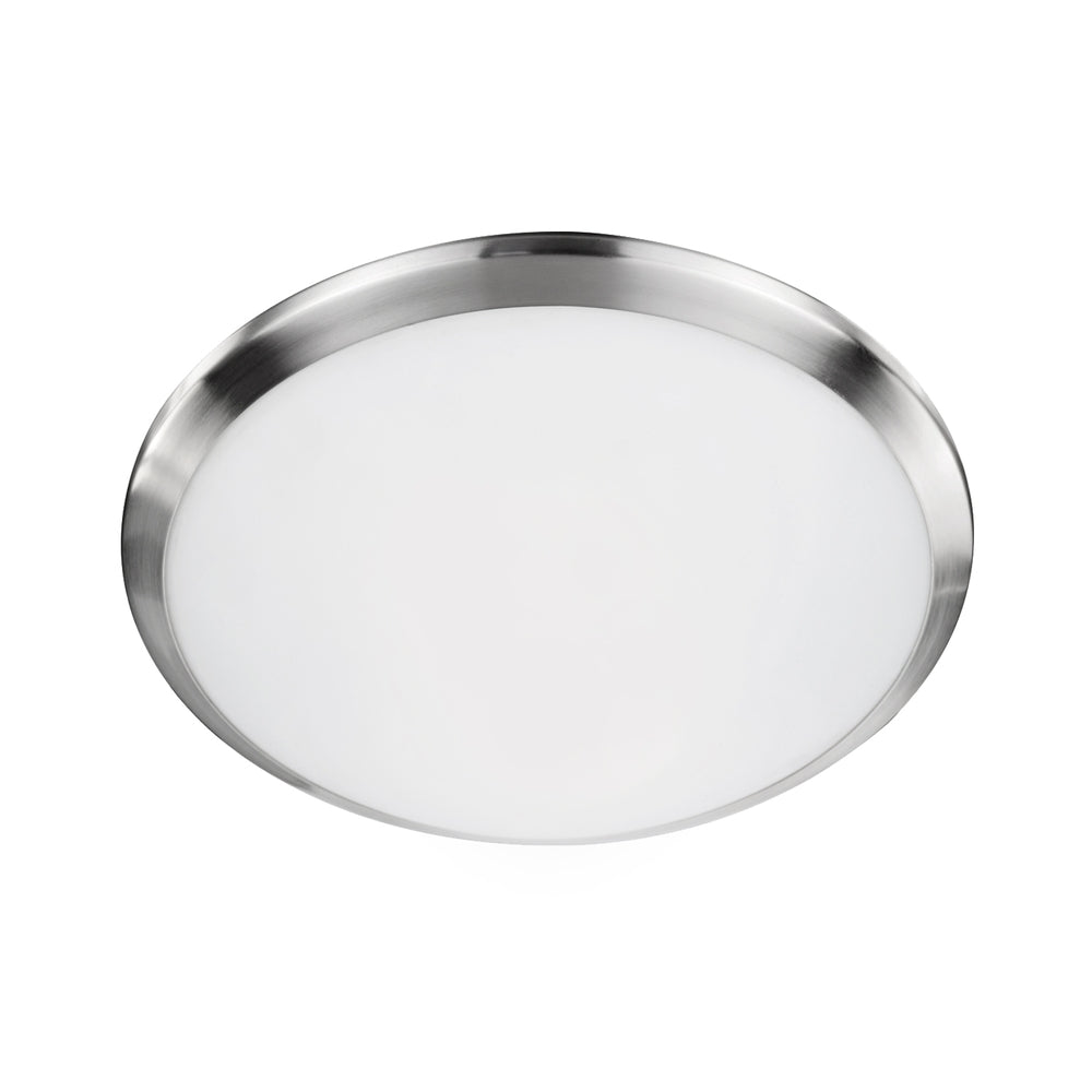 Single lamp LED flush mount ceiling fixture with round white opal glass. Metal details available in black, brushed nickel, chrome and brushed gold finish, and is equipped with our powerful 120V AC LED technology