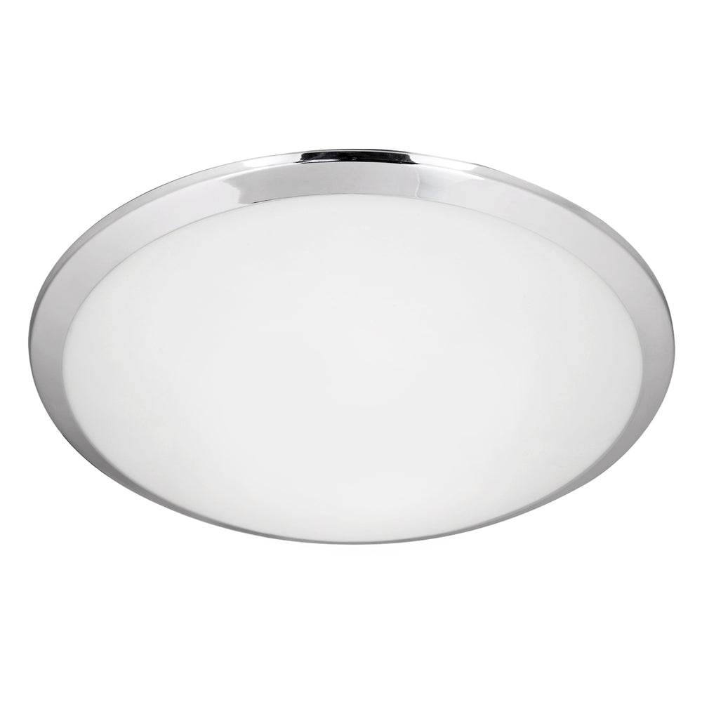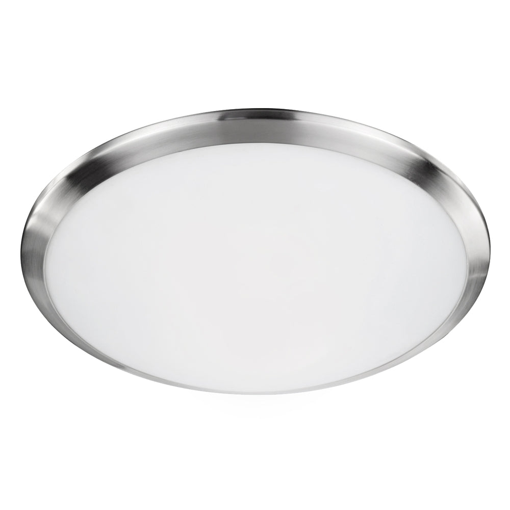 Single lamp LED flush mount ceiling fixture with round white opal glass. Metal details available in black, brushed nickel, chrome finish or brushed gold finish and is equipped with our powerful 120V AC LED technology
