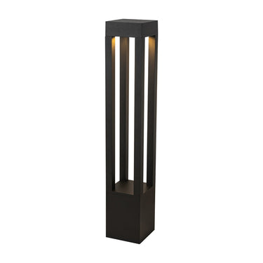 Architectural designed high powered LED exterior bollard fixture, die-cast aluminum square-shaped housing with four rectangular-shaped openings which radiates the light downward and throughout all openings and surrounding areas of the bollard. Certified ETL wet location rated and is available in two different heights.