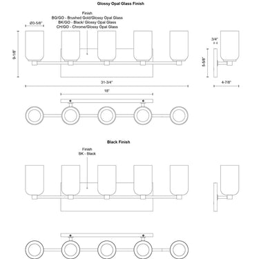Specification- Fixture Dimensions: W31-3/4" x H9-1/8" x E4-7/8"