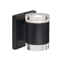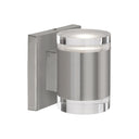 LED cylinder shaped updown wall sconce with glass discs. Metal details in black, brushed gold, brushed nickel or chrome finish, and is equipped with our powerful 120V AC LED technology.