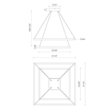 Specification- Fixture Dimensions: L31-1/2" x W31-1/2" x H1-3/8"