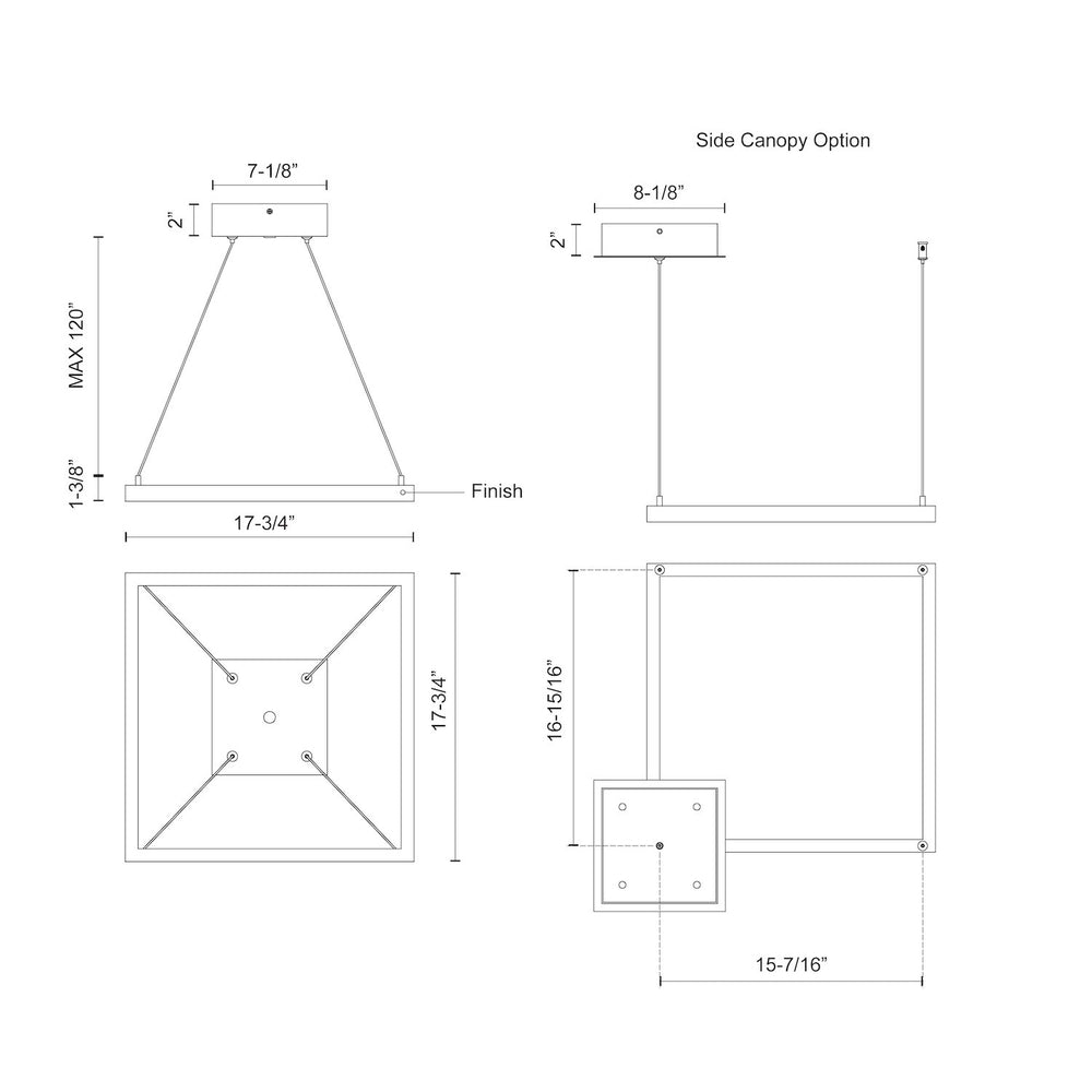 Specification- Fixture Dimensions: L17-3/4" x W17-3/4" x H1-3/8"