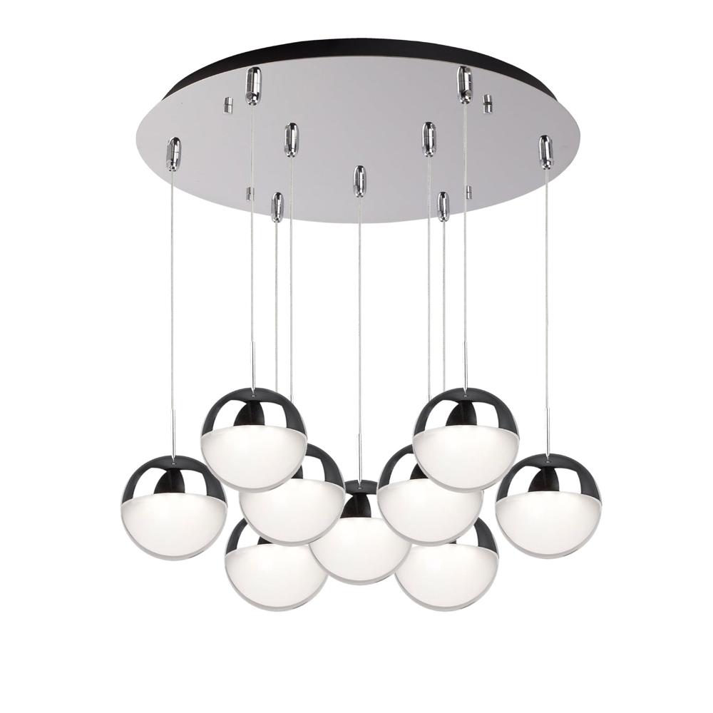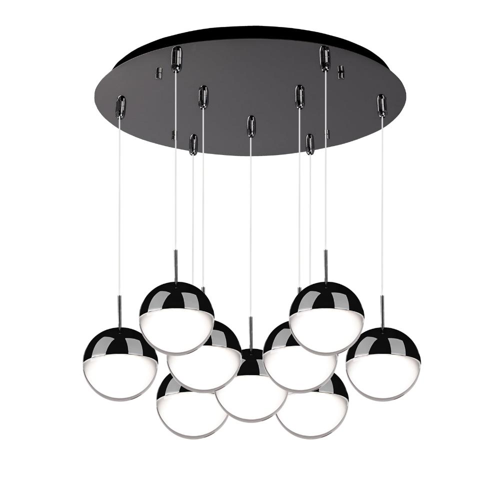 A timeless spherical geometry is inherent to the Pluto pendant. A split line at the globe equator separates complementary plated LED housing from translucent diffuser. The multiple color options make the fixture a perfect furnishing accent or, in multiples, a focal point.