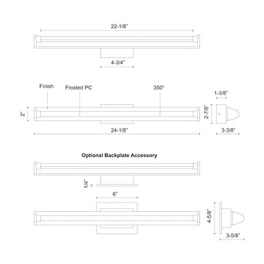 Specification- Fixture Dimensions: W24-1/8" x H2-7/8" x E3-5/8"