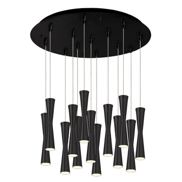 Formed aluminum hour-glass shade. Dual translucent acrylic diffusers. Matte powder-coated or plated finish. Up and down light.