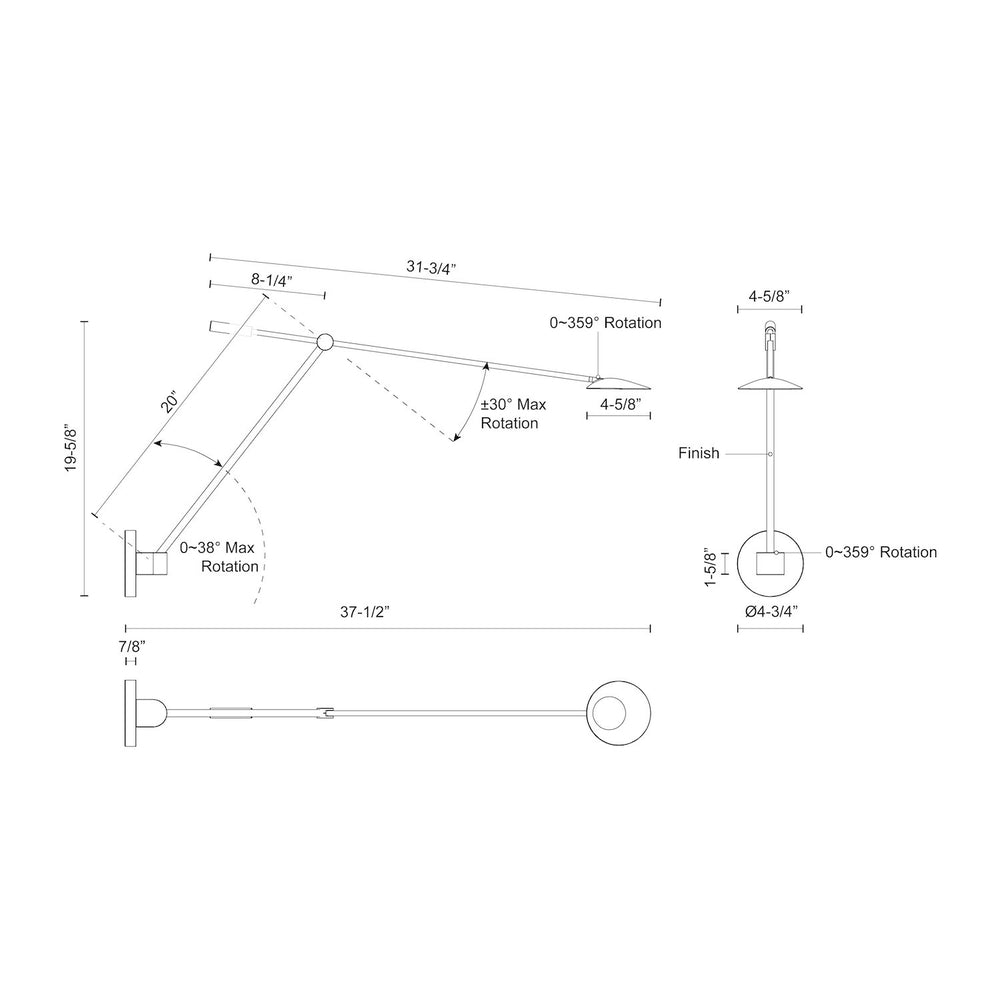 Specification- Fixture Dimensions: W4-5/8" x H19-5/8" x E37-1/2"