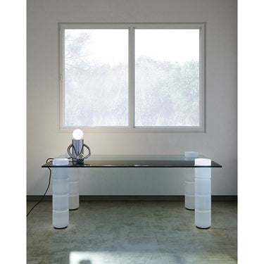 Created in collaboration between Hannah Jewett and Kuzco, Septum was created as a functional lighting sculpture, featuring a sleek twist on the pierced metal hardware featured in Hannah Jewett's jewelry. The enlarged piercing allows for a new magnified look into one of the brand's classic yet futuristic silhouettes. Available in chrome or black.