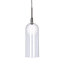 Clear glass cylindrical shade rests on opal acrylic diffuser globe. Brushed plated finishes or satin coating. Down light. Custom options available.