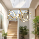 A looping radiant line casts light across space in a continuous helical path. The Synergy series is characterized by the rolled rectangular extrusion, which emits soft light through the silicon opal lens. Configured in both linear and ring arrangements, the arcing aluminum allows the curated finishes to be visible at every angle.