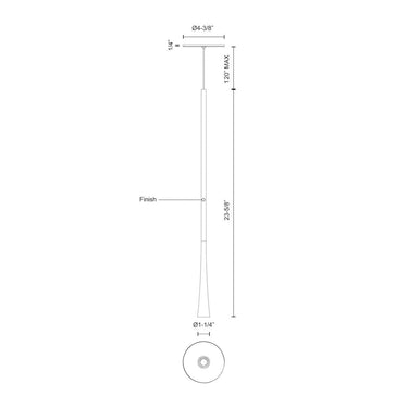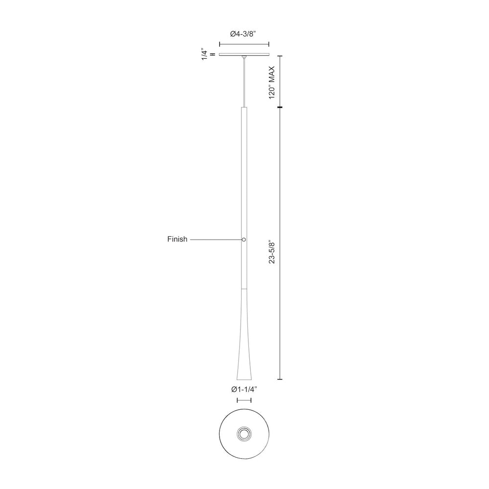 Specification- Fixture Dimensions: D1-1/4" x H23-5/8"