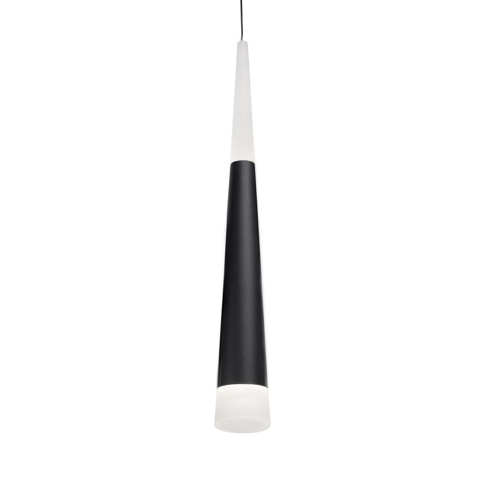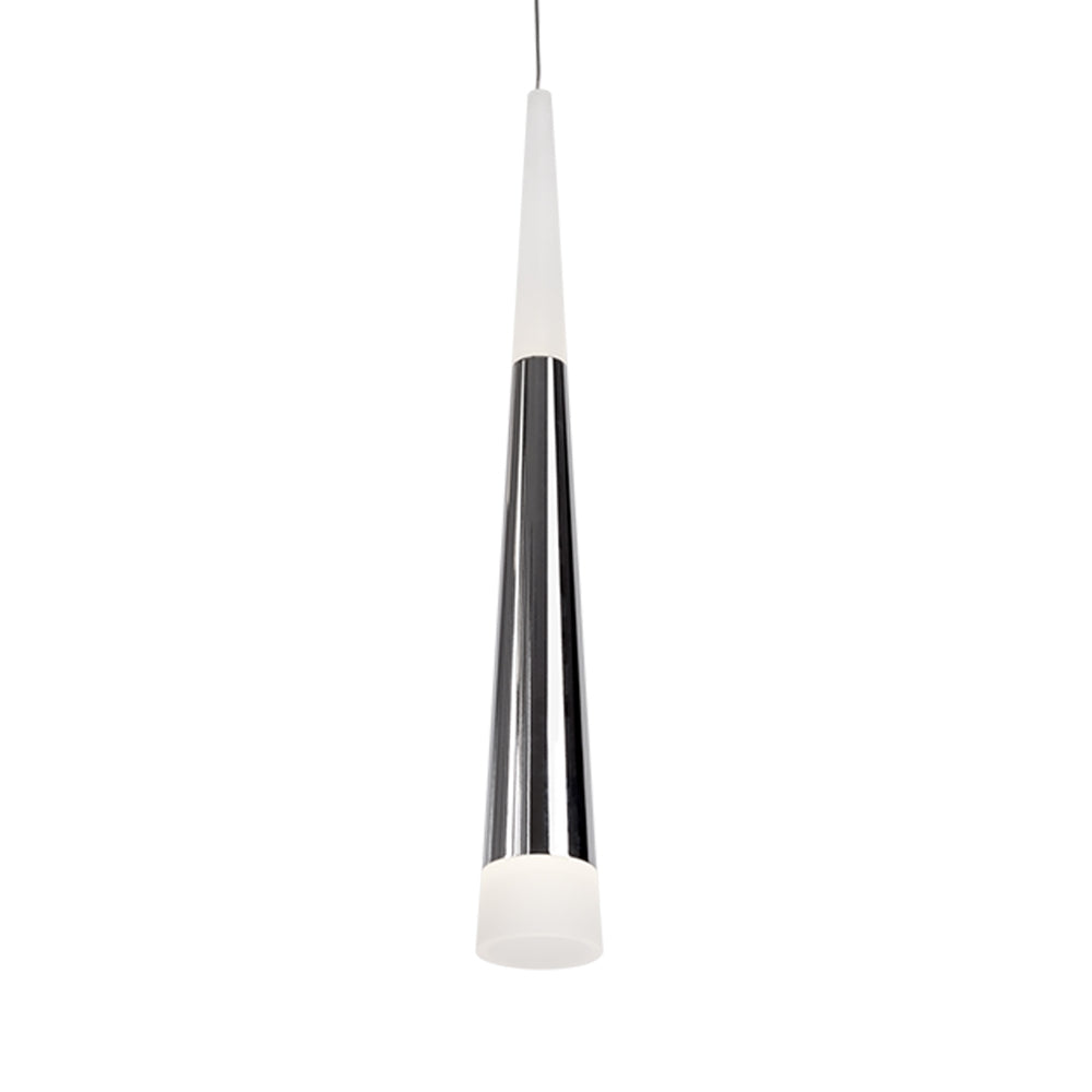 Single LED lamp pendant, slender cone-shaped cylinder with acrylic top and bottom of cone which lights up on both ends. Equipped with our powerful 120V AC LED technology. Chrome finish: available in a variety of multi-pendant options see series for family details. Black and Gold finish: build your own configuration, choose how many pendants and choose the canopy shape and size accordingly.