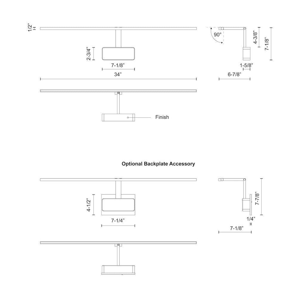 Specification- Fixture Dimensions: W34" x H8-3/8" x E9"