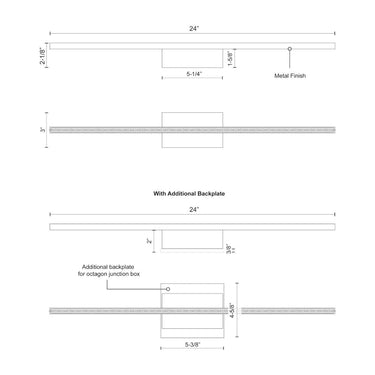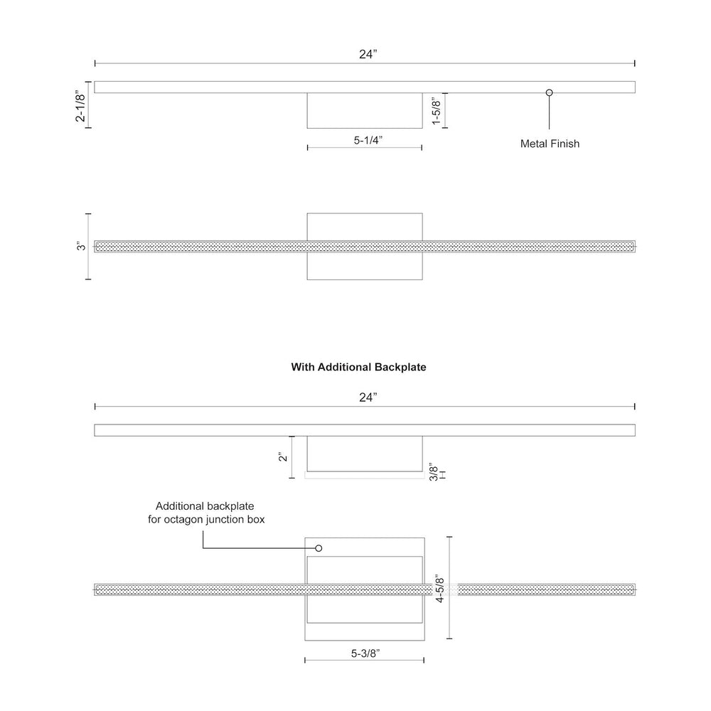 Specification- Fixture Dimensions: W24" x H3" x E2-1/8"
