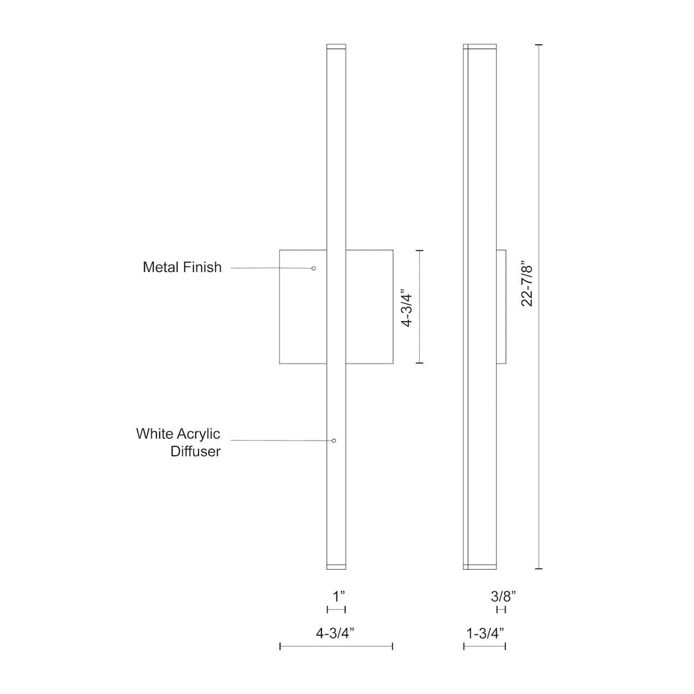 Specification- Fixture Dimensions: W1" x H22-7/8" x E1-3/4"