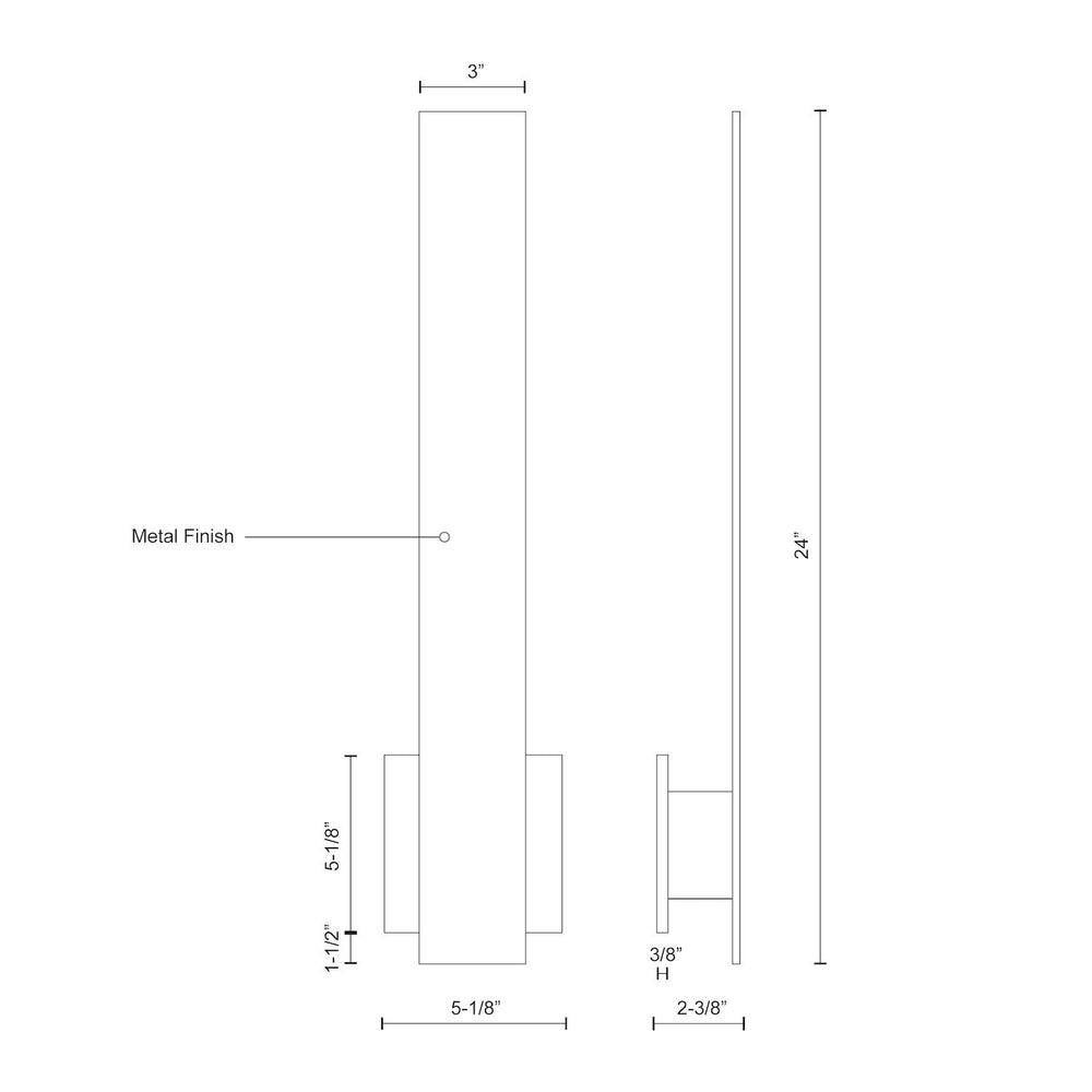 Specification- Fixture Dimensions: W3" x H24" x E2-3/8"