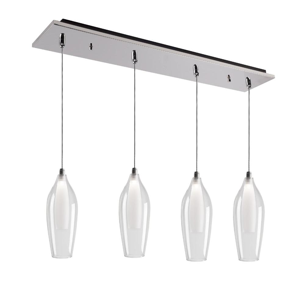 Simplistic elegant single LED pendant with a slender drop clear outer glass and frosted inner glass set together as one piece. New patent pending socket design and Kuzco SSL wire allow this fixture to be 120V AC LED. Metal details in chrome finish.