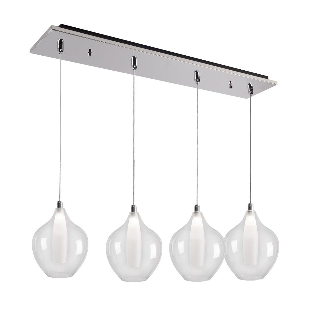 Simplistic elegant single LED pendant with a slender drop clear outer glass and frosted inner glass set together as one piece. New patent pending socket design and Kuzco SSL wire allow this fixture to be 120V AC LED. Metal details in chrome finish.
