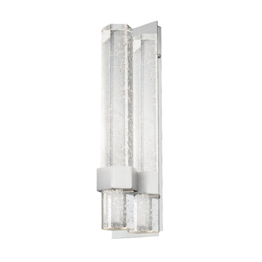 This grand LED wall sconce has a bold but dazzling design to it. With two slender hexagonal shaped crystals encased with bubbles when lit it sparkles a unique pattern against the wall and lights up the surrounding area evenly. Available in brushed nickel, polished chrome, or bronze metal details and comes equipped with our powerful 120V AC LED technology