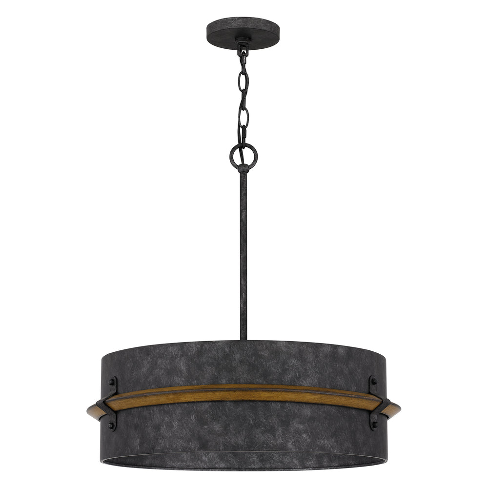 The Lariat pendant offers plenty of patina. The old black finish looks timeworn yet fresh, while wooden trim adds an organic-inspired element. Use this piece in a kitchen or dining room for a warm, welcoming, and subtly Zen aesthetic.