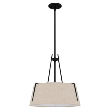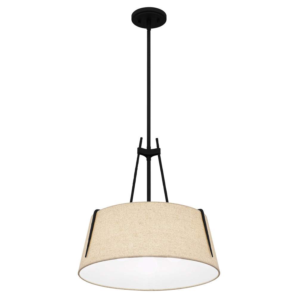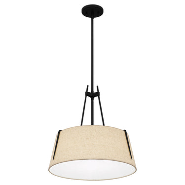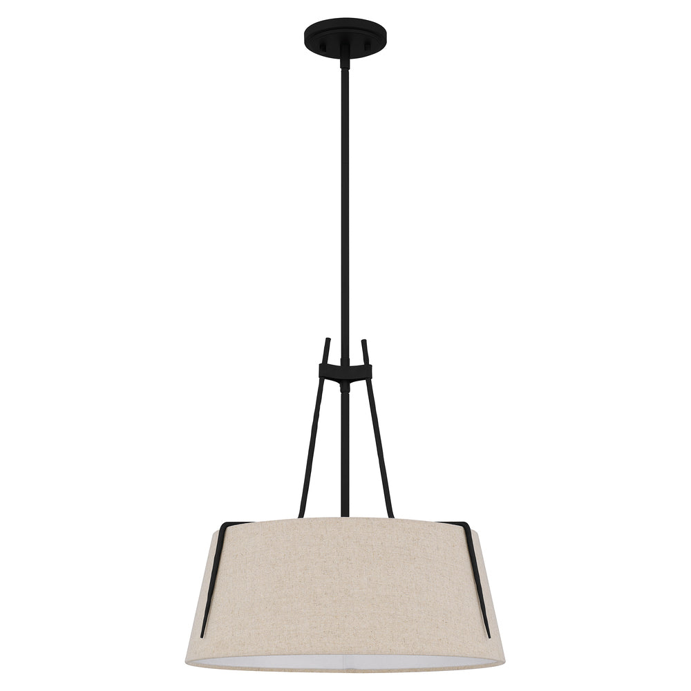 Leona's natural linen shade adds rich texture to its striking, on-trend design. Linear iron details provide sumptuous contrast to this mini pendant or semi-flush mount, creating a tasteful addition to transitional spaces. A matte black finish rounds out Leona's transitional styling.