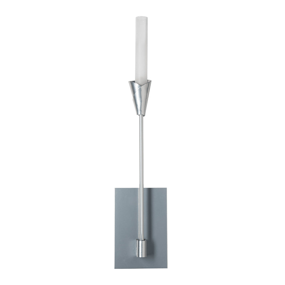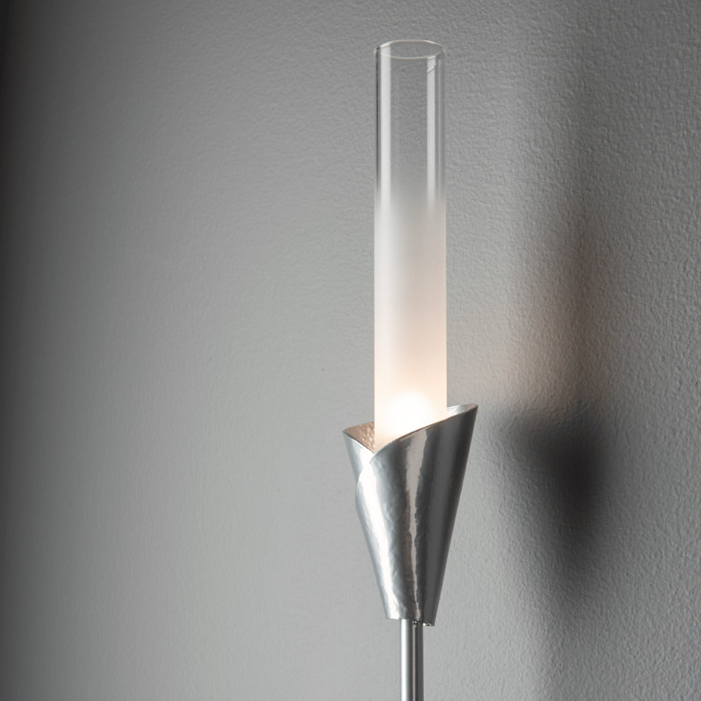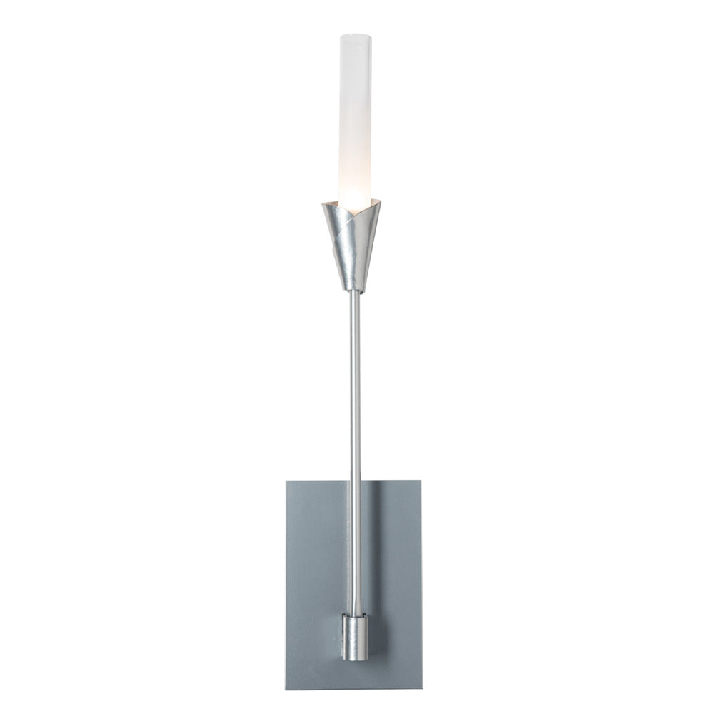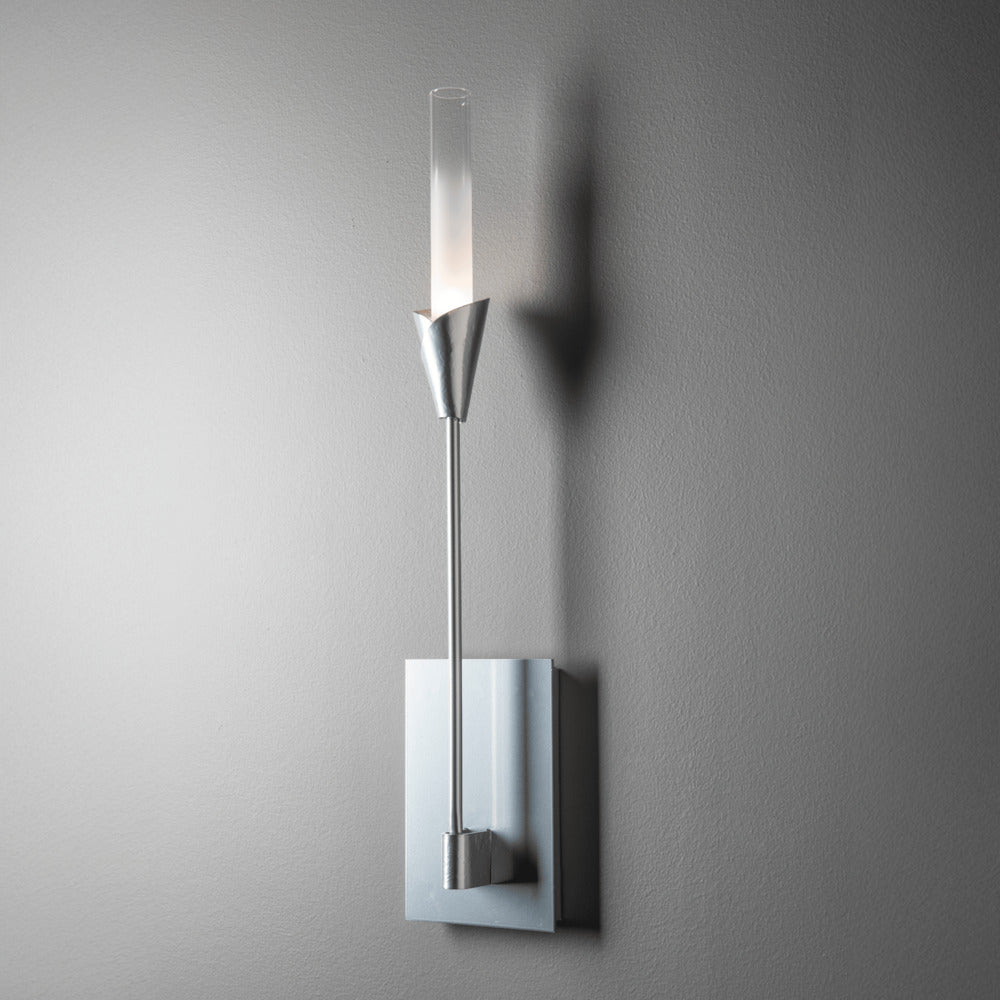 Nearly 2 ft in height, the beautiful Lilium Sconce sprouts straight up to illuminate its space. With a hand-forged, artisanally crafted bobeche and tall frosted-to-clear gradient cylindrical glass, the Lilium rises with its simple, clean lines.