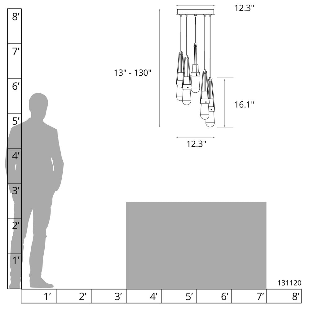 Hubbardton Forge 131120 Link 5-Light Blown Glass Pendant