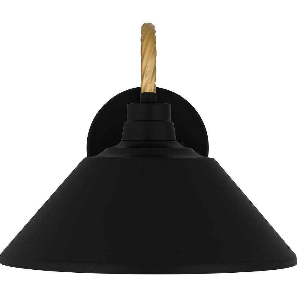 Matte black and gold make a perfect pairing in the Longshore outdoor wall lantern. The black metal shade is accented by a gold braided rope design that takes the place of a traditional hook. With its coastal inspired design and sleek silhouette, Longshore is an obvious choice next to any front door or as a porch light.