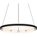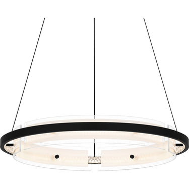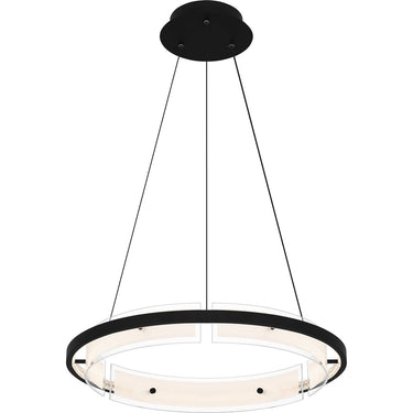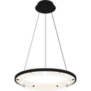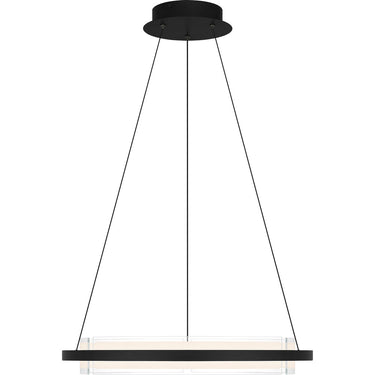 Simple construction and minimal styling elevate the frosted glass detail of Malik. A clean and contemporary ring defines the pendant, featuring a matte black finish for a sharp contrast. An integrated LED light source shines through the clear shade, sparkling brilliantly as it touches each frosted glass accent.