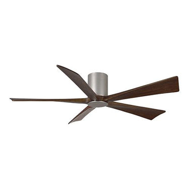 Atlas Irene-5HLK Five Bladed Paddle Fan in Brushed Nickel with Barnwood Tone Blades and LED Light kit.