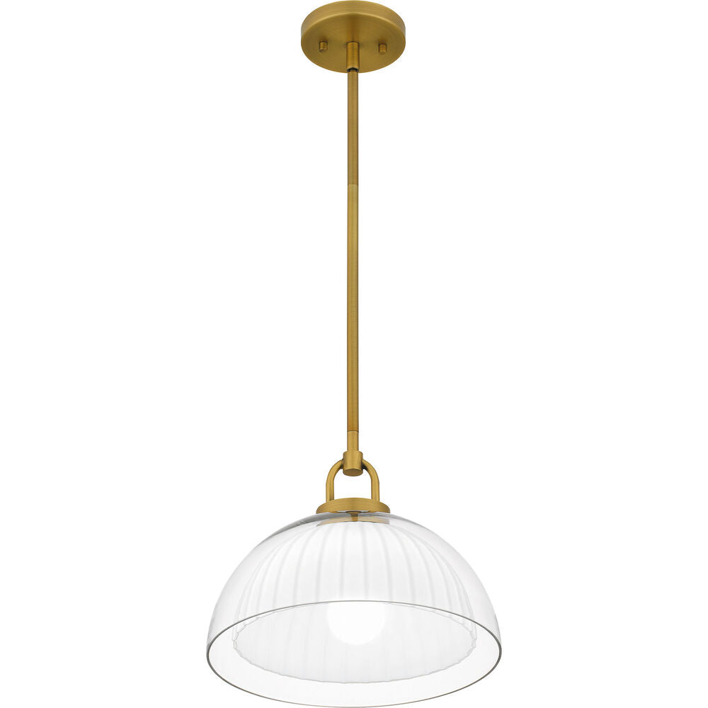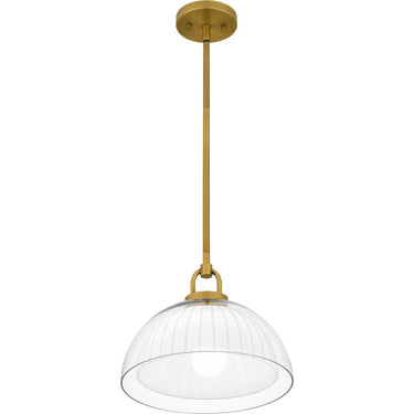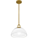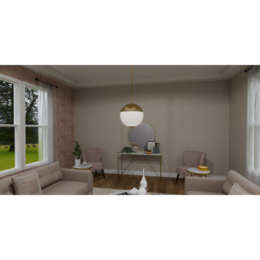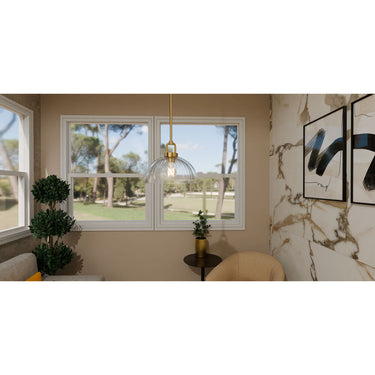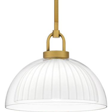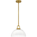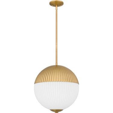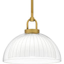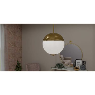 Brushed gold and ribbed glass form a beautiful, classic pairing in the Mia pendant light. The large globe shade features a multi-material element, combining metal with opal etched ribbed glass for a pretty pleated effect. With its versatile styling, Mia makes a beautiful addition to any updated traditional kitchen, living room, or bedroom.