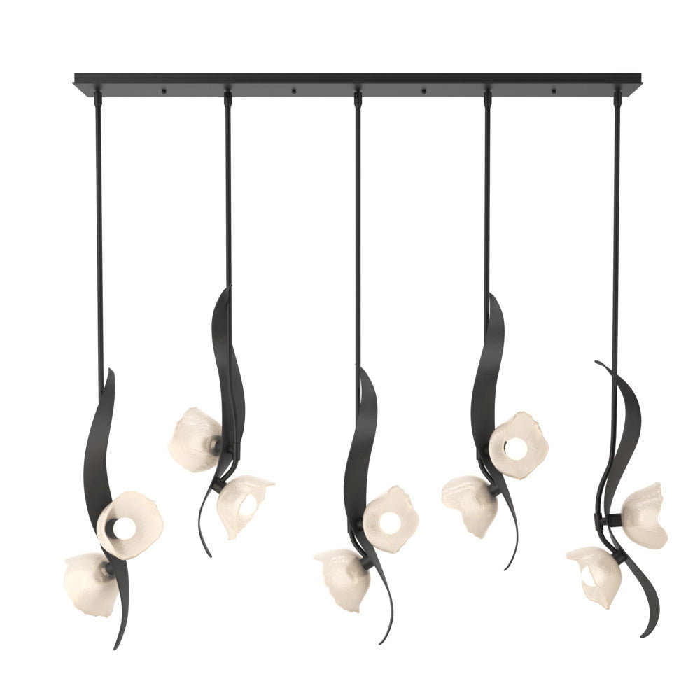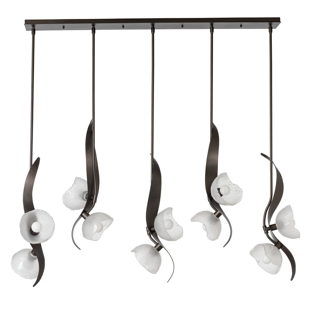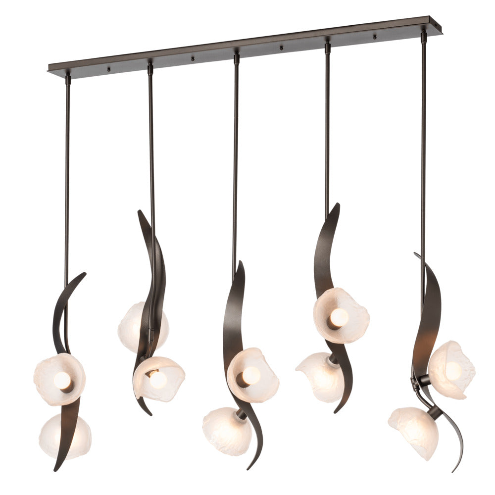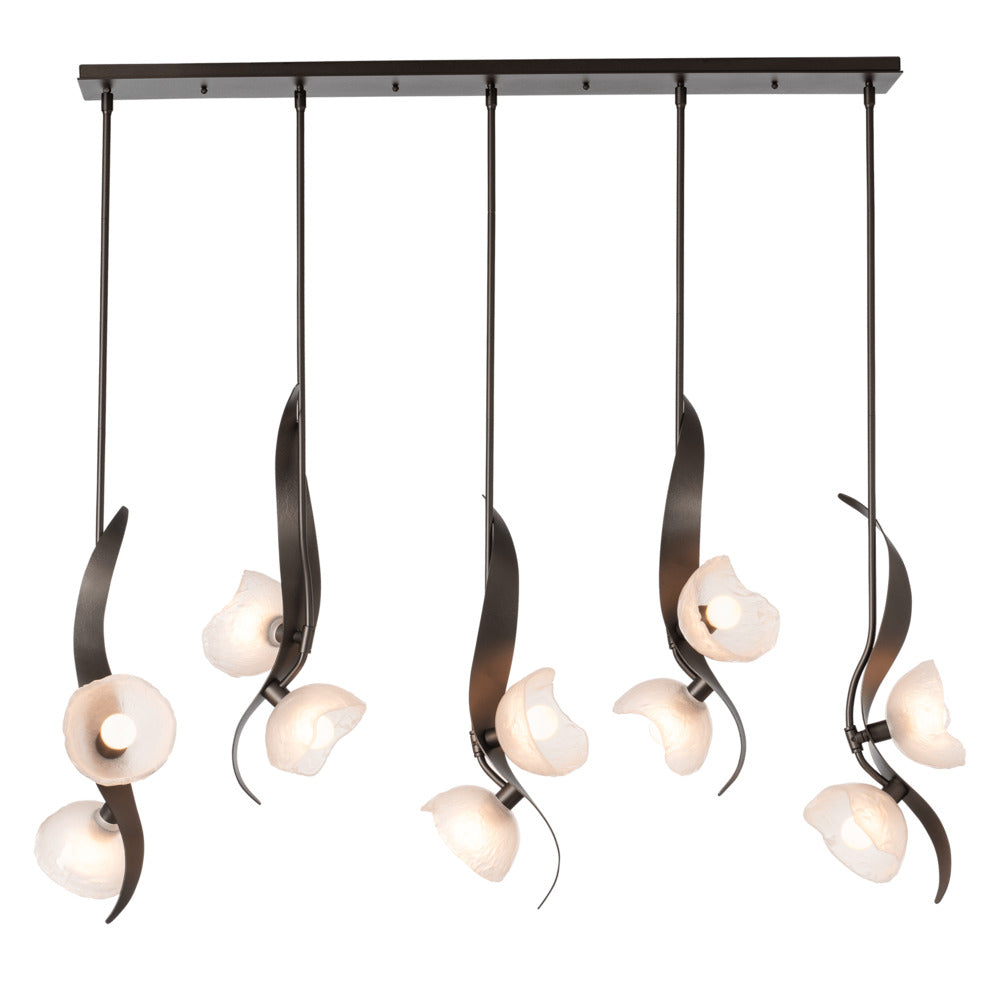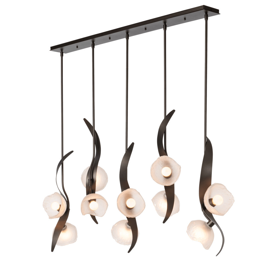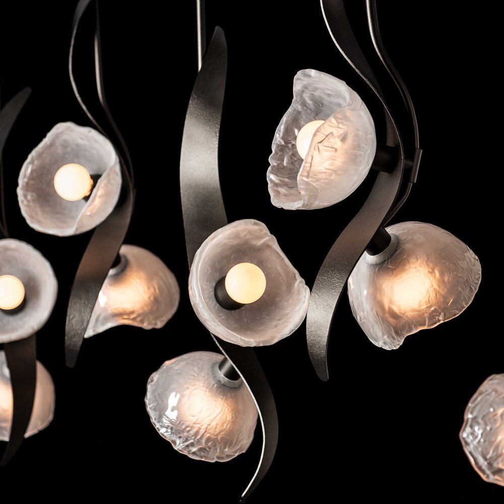 Named for Designer Ori Goldberg's talented daughter, the Mika 10-Light Pendant captures the graceful flow and movement of a young dancer through its sculptural metal design. Each steel "tige" showcases not just one, but two beautiful lights, illuminating any space with a warm and inviting glow. The Mika's unique, handmade glass from Italy creates a stunning interplay with the hand-forged steel-a true testament to beauty and craftsmanship.