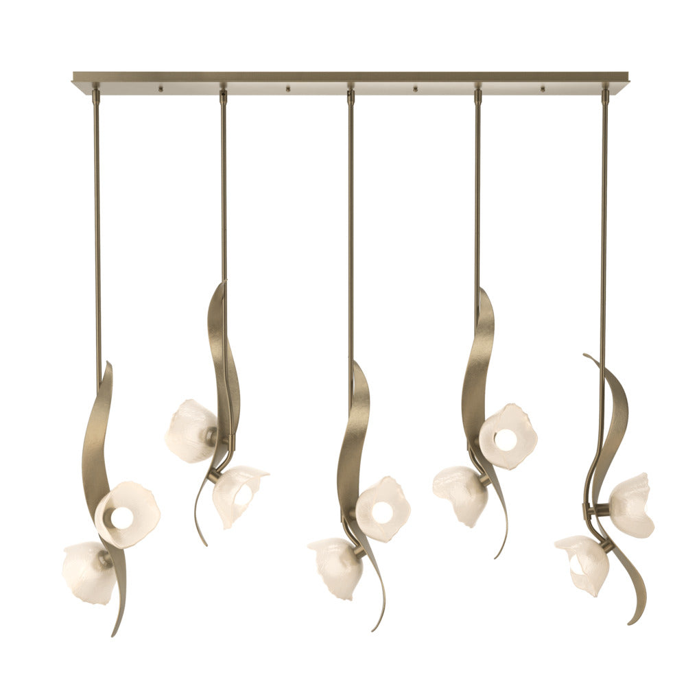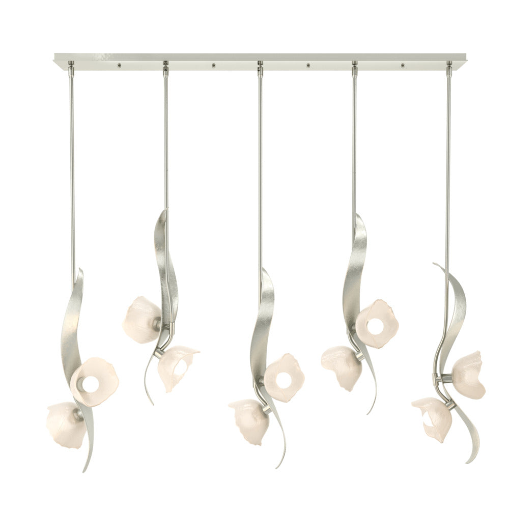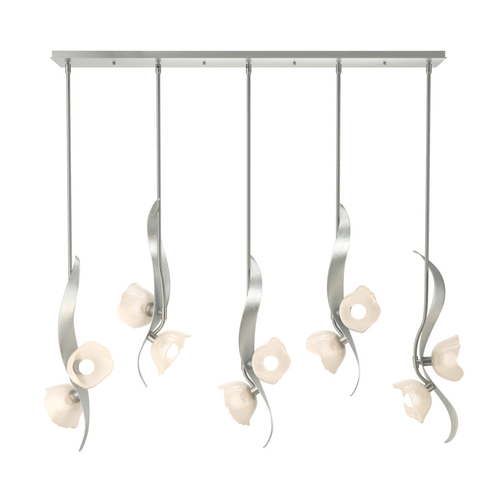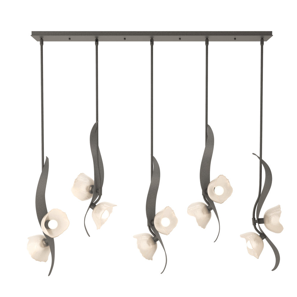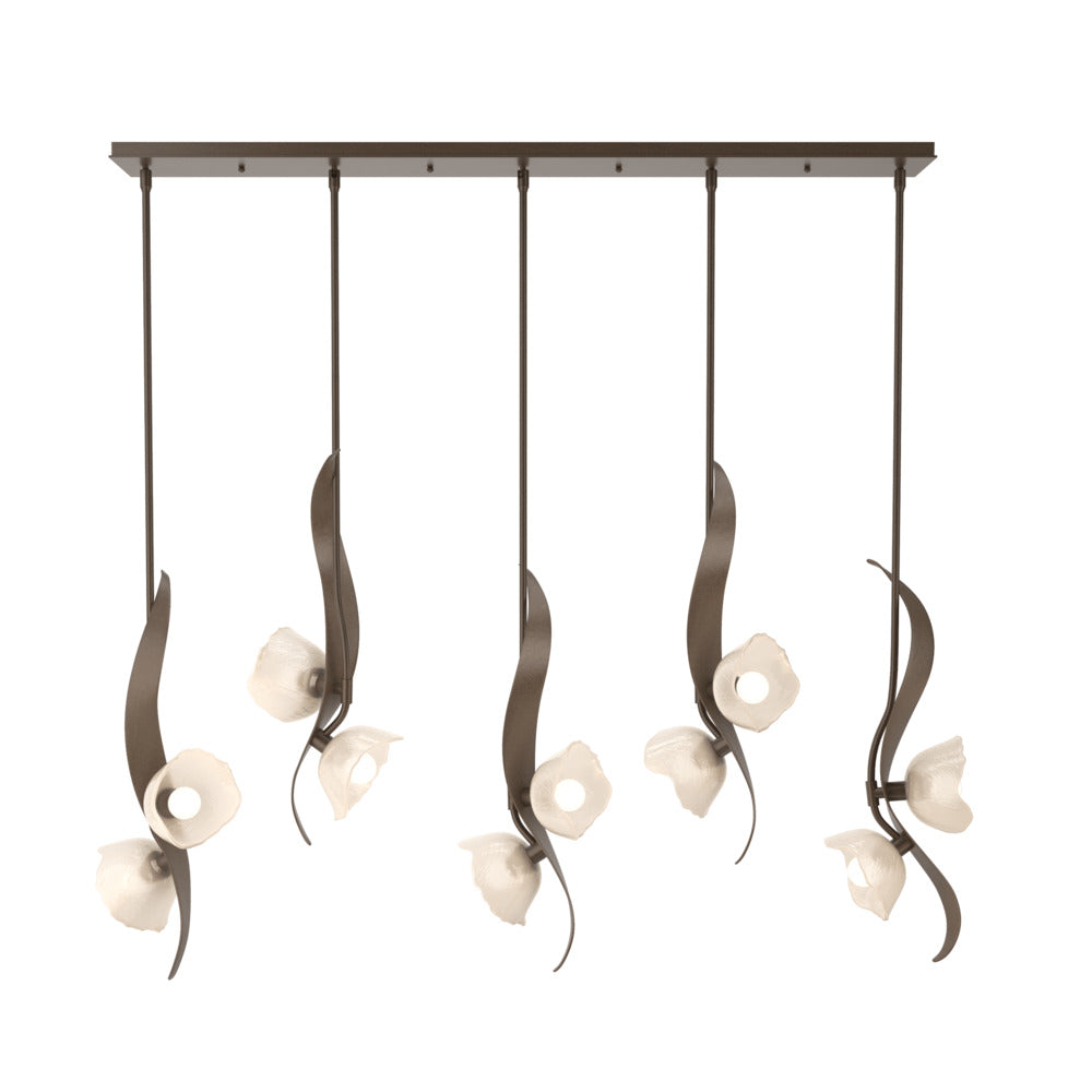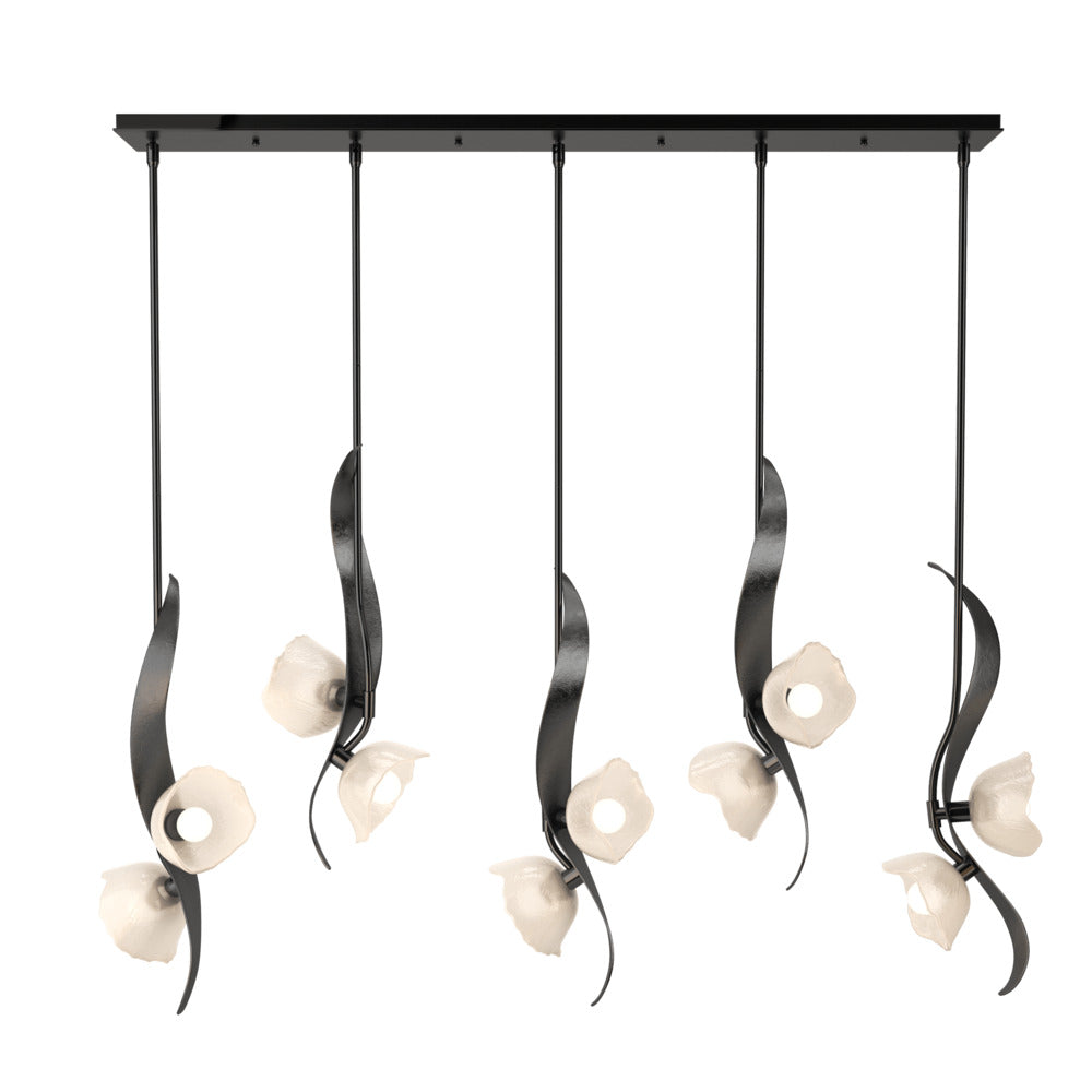 Named for Designer Ori Goldberg's talented daughter, the Mika 10-Light Pendant captures the graceful flow and movement of a young dancer through its sculptural metal design. Each steel "tige" showcases not just one, but two beautiful lights, illuminating any space with a warm and inviting glow. The Mika's unique, handmade glass from Italy creates a stunning interplay with the hand-forged steel-a true testament to beauty and craftsmanship.