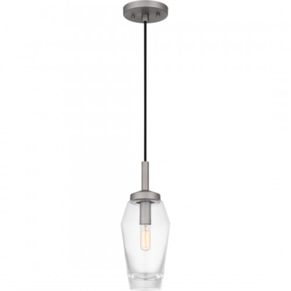 With a clear glass shade and sleek antique nickel finish, the Xander mini pendant adds the perfect transitional touch to any room. Xander features a simple silhouette with softly angled lines, adding a touch of modern style. Hang Xander by itself or in a grouping over a kitchen island, bar area, or table.