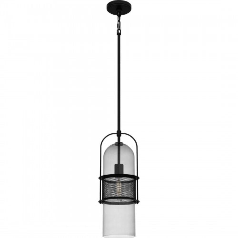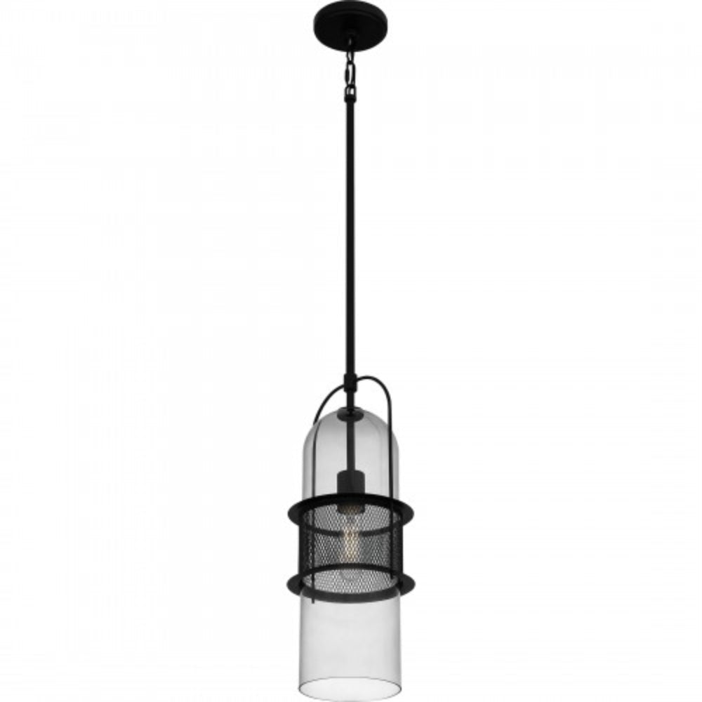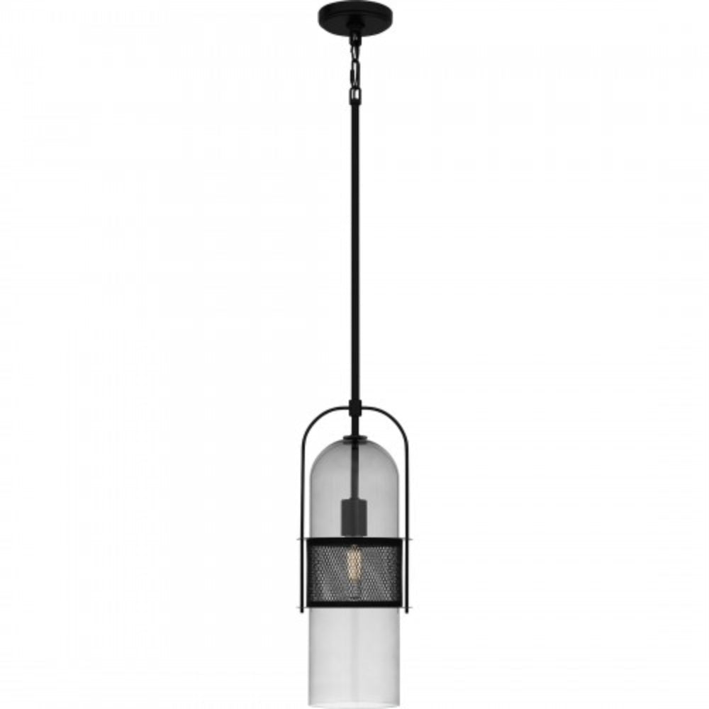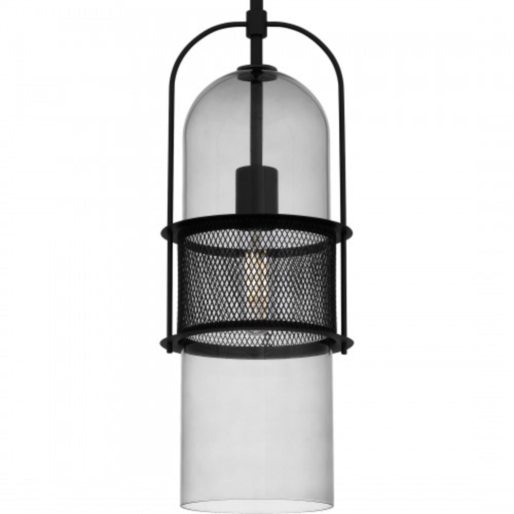 A simple design with industrial-inspired details, Soffer mini pendant lights are perfect for a variety of interior spaces. The streamlined, clear glass shade features an exposed bulb socket and a metal mesh band for added style. Soffer is available in two versatile finishes: choose from antique nickel or matte black.