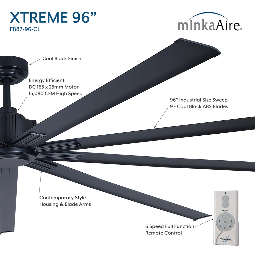 Minka Aire Xtreme 96" 9-Blade Ceiling Fan - Coal Black