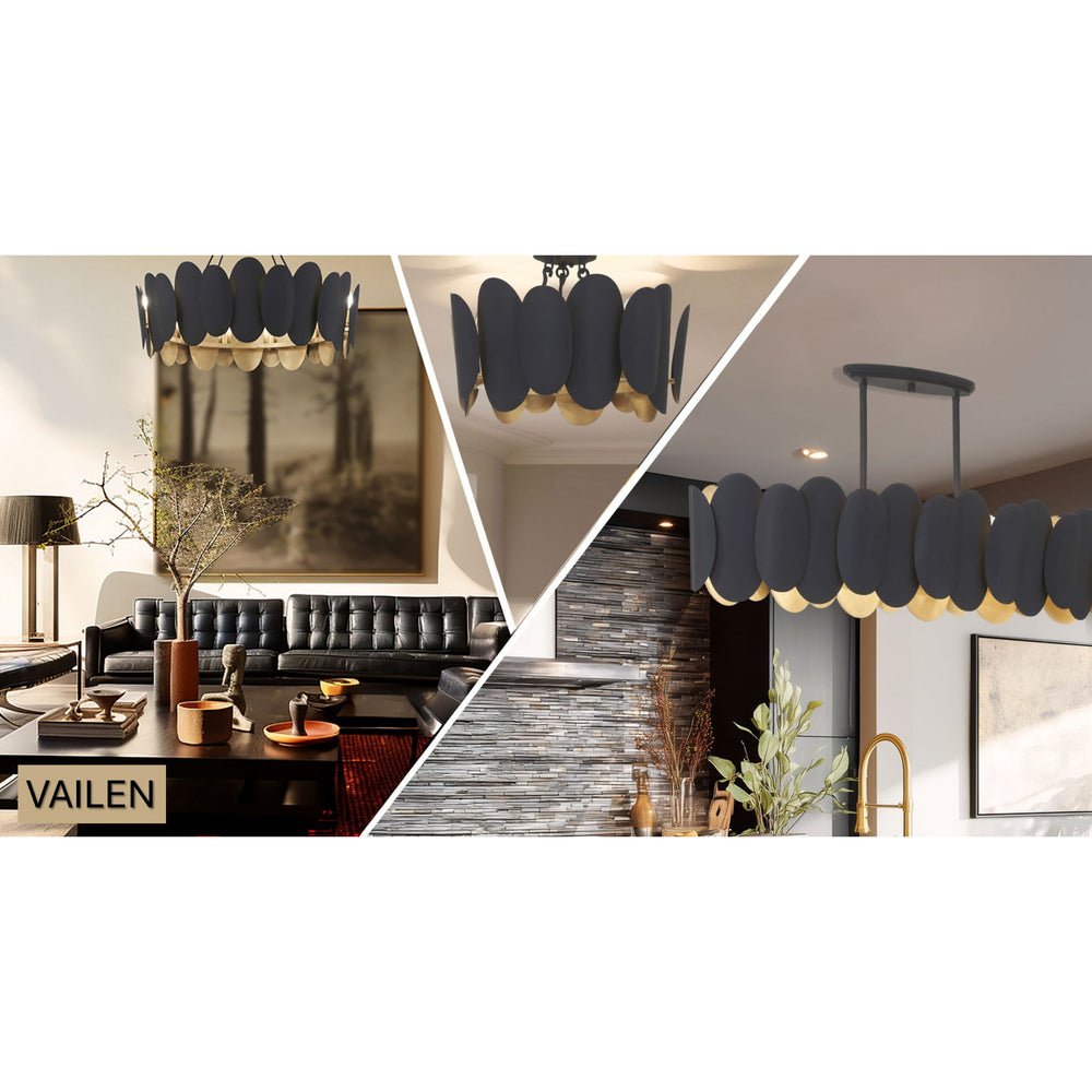 Minka Lavery Vailen 7-Light Semi Flush - Dark Matte Black and Textured Gold