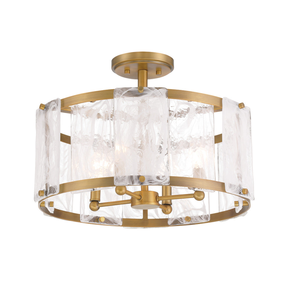 Minka Lavery Veil 4-Light Semi Flush - Legacy Brass with White Swirl Glass