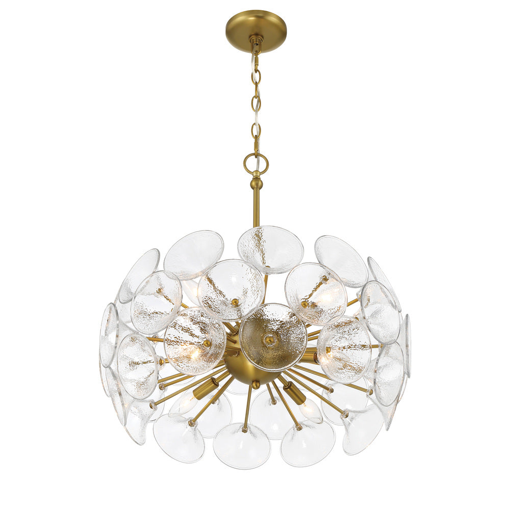 Minka Lavery Winter 8 Light Chandelier in soft Brass finish with Textured Clear Fluted Glass