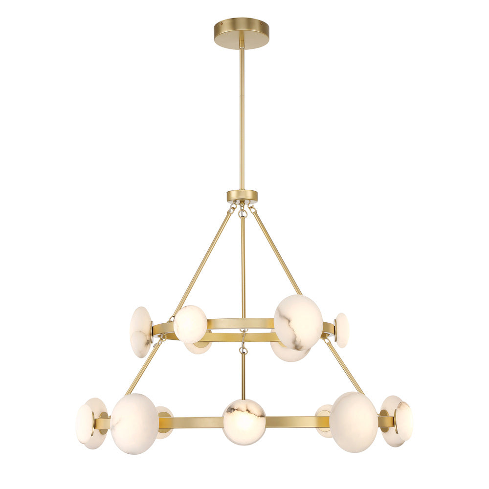 Minka Lavery Zill 16 LED Light 2 Tier Chandelier in Lily Gold Finish with Natural Alabaster Shades