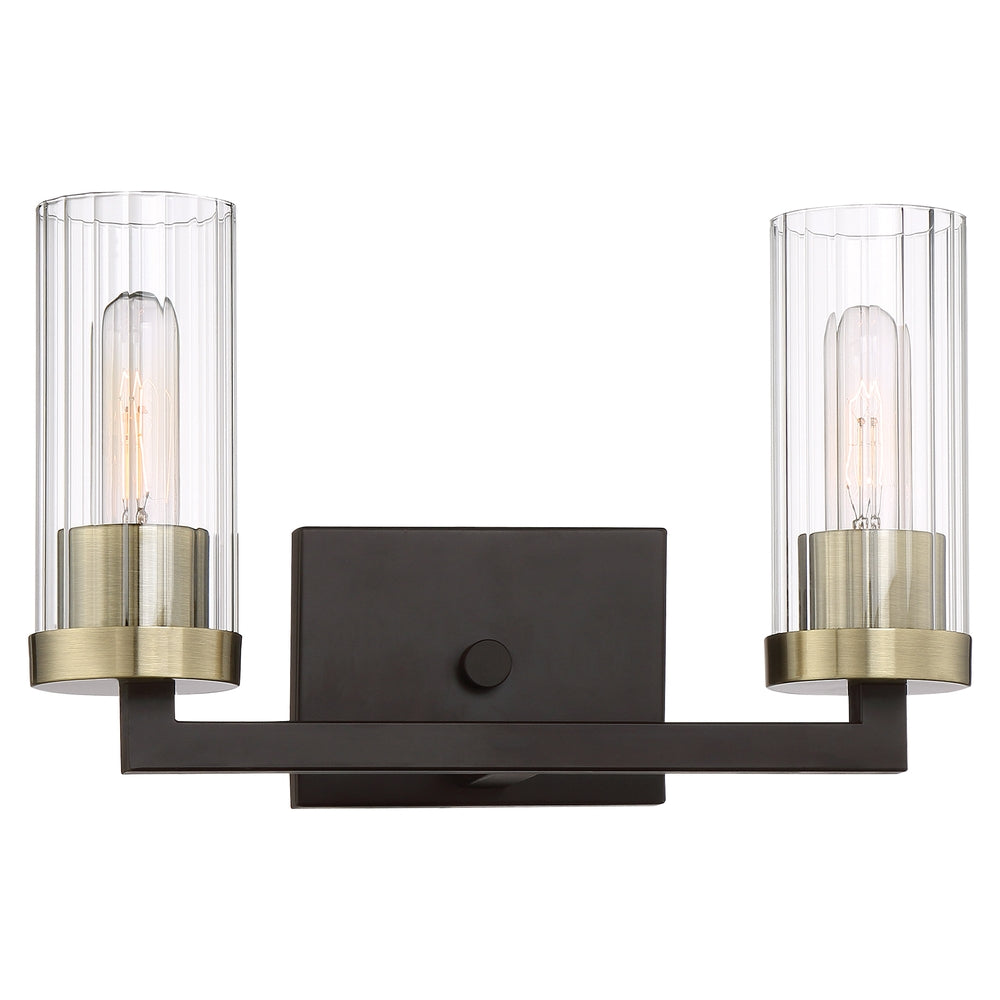 Ainsley Court 2 Light 15" Aged Kingston Bronze with Brushed Brass Highlights Bath Light Wall Light