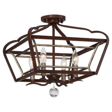 Astrapia 4 Light 16" Dark Rubbed Sienna/Aged Silver Semi Flush Mount Ceiling Light