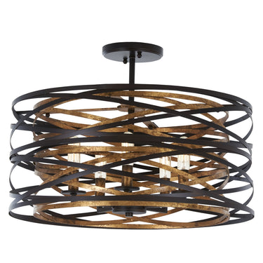 Vortic Flow 5 Light 20" Dark Bronze with Mosaic Gold Semi-Flushmount Ceiling Light