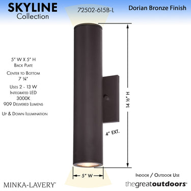 Skyline LED 15" Dorian Bronze Outdoor Wall Mount Lantern