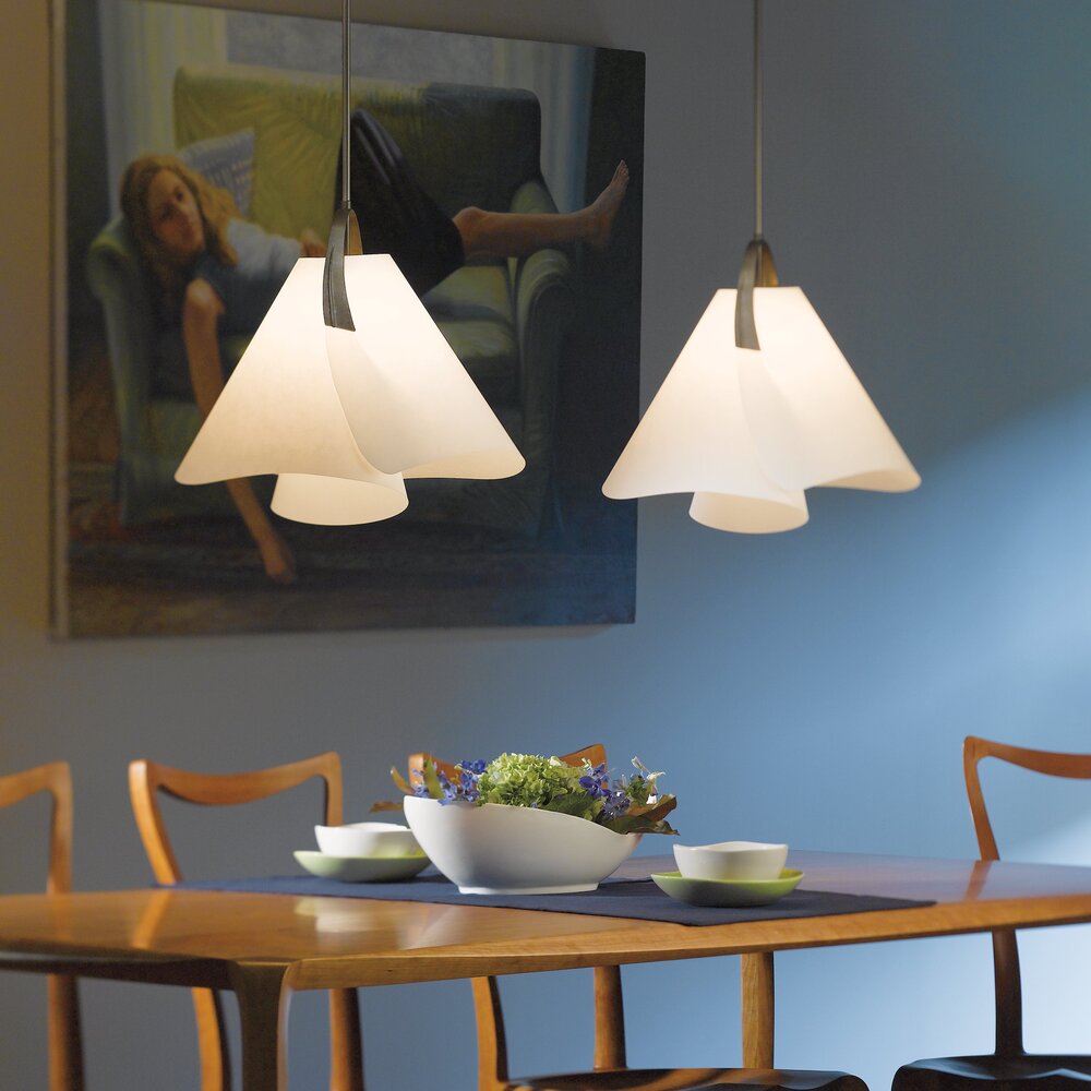 Our Mobius Pendant is named after August Ferdinand Mobius, the discoverer of the Mobius Strip-a structure having a single surface that is simultaneously an inside and outside boundary. It's difficult to explain the concept, but easy to appreciate the artistry behind this light with its delicate, flower-like shade.