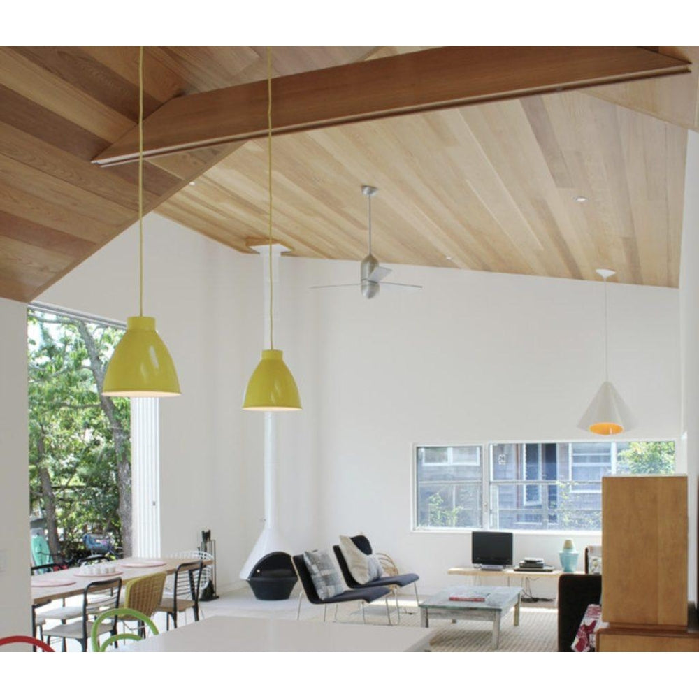 It is also important to recognize that in a real world installation, there are a number of variables that can affect air movement patterns and volume, including ceiling height, down rod length, room size/layout, furnishings and airflow direction. It can be challenging to rely on the reported EnergyGuide information alone to determine how the airflow might feel in a given application. Nevertheless, our EnergyGuide data shows that all Modern Fan products perform at the upper range of fans on the market.
