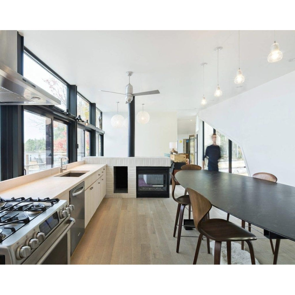 - Optional LED light: 17W, 90 CRI, 3000K, 1530 lumens (dimmable) behind opal glass diffuser; CA Title 24 (JA8) compliant