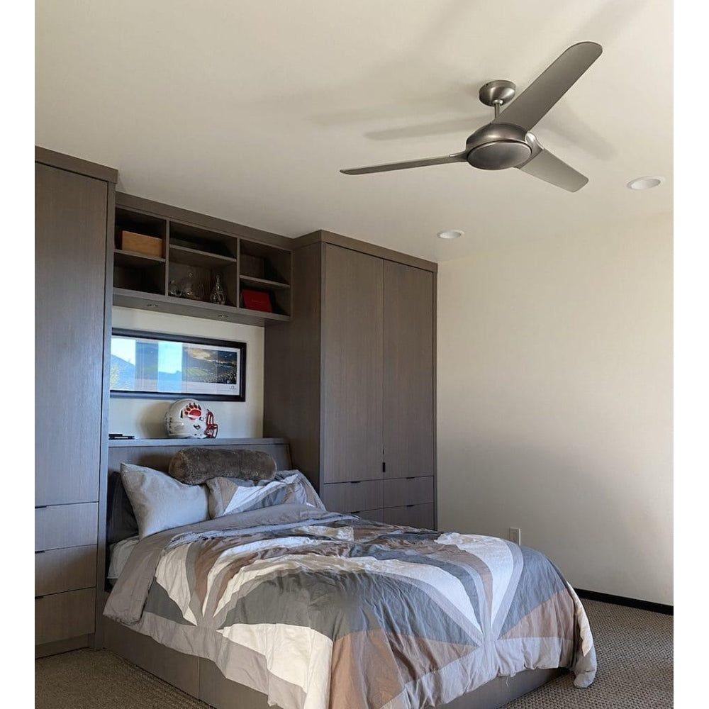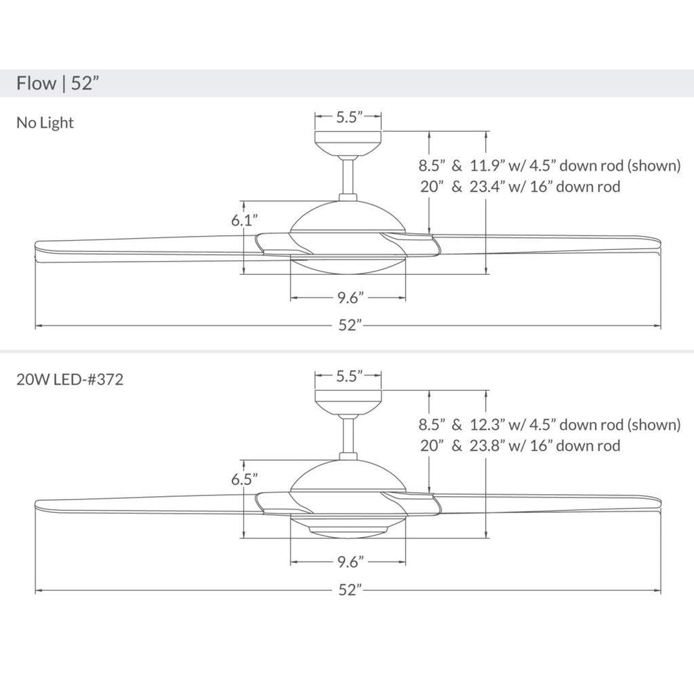 - Optional LED light: 20W, 90 CRI, 3000K, 1800 lumens (dimmable) behind opal glass diffuser; adds .5 to length of fan; CA Title 24 (JA8) compliant
