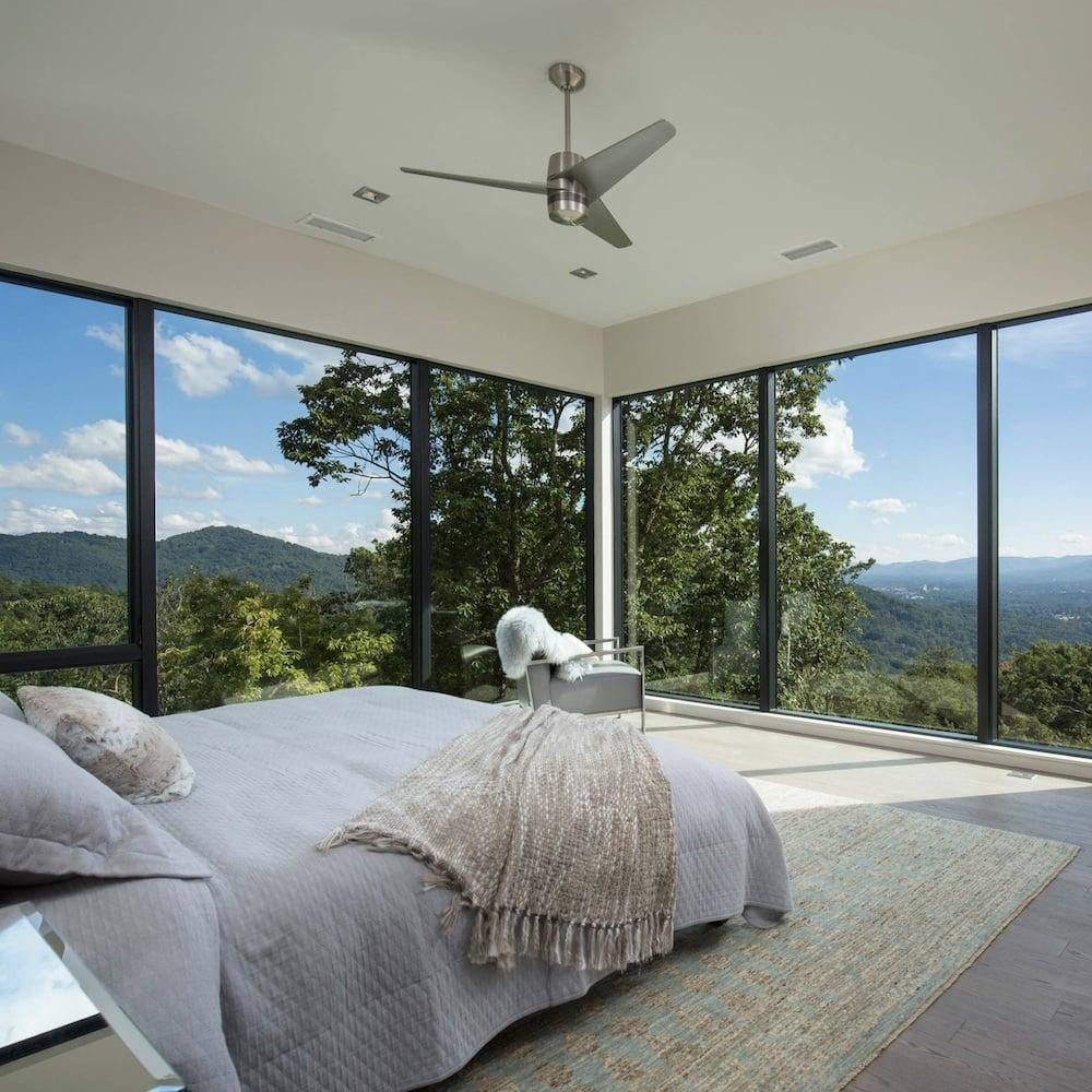 It is also important to recognize that in a real world installation, there are a number of variables that can affect air movement patterns and volume, including ceiling height, down rod length, room size/layout, furnishings and airflow direction. It can be challenging to rely on the reported EnergyGuide information alone to determine how the airflow might feel in a given application. Nevertheless, our EnergyGuide data shows that all Modern Fan products perform at the upper range of fans on the market.